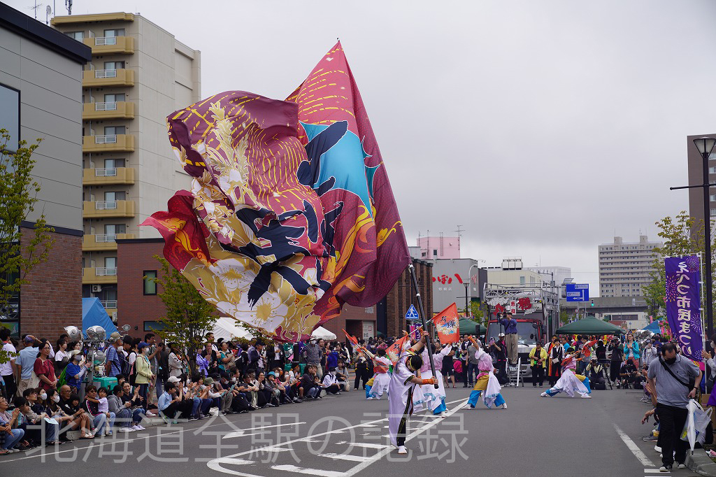 かつては夕張鉄道との乗換駅であり急行「かむい」も停車していた。2011年11月に高架化された。駅構内のあちこちに赤いアクセントがあしらわれている