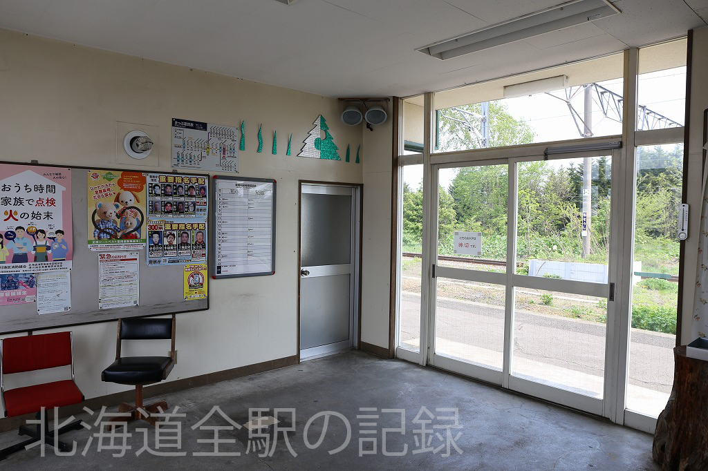 駅待合室内はアットホームな地域の空間となっている。2022年4月22日からは駅名標にはユニークな牛のオブジェが飾られている