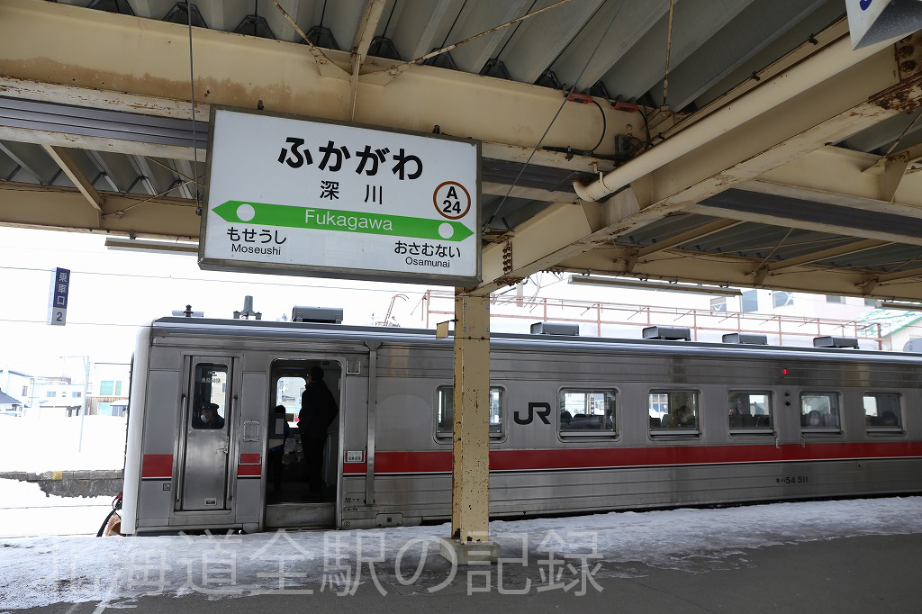 留萌本線の乗換駅。駅前の和菓子屋さんでは名物うろこダンゴが売られている。うろこダンゴはもともと椿ダンゴの名で売られる予定だったが、当時の深川駅長が椿さんという名前で「駅で名前を連呼されては困る」との要望を受けうろこダンゴに落ち着いたというエピソードが残る