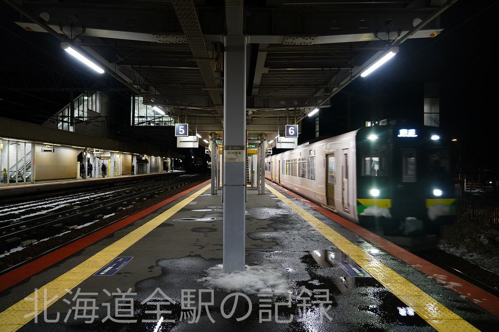 函館本線と千歳線の乗換駅。かつてはカートレイン北海道の発着駅だった。2011年(平成23年)1月30日橋上駅舎の供用を開始