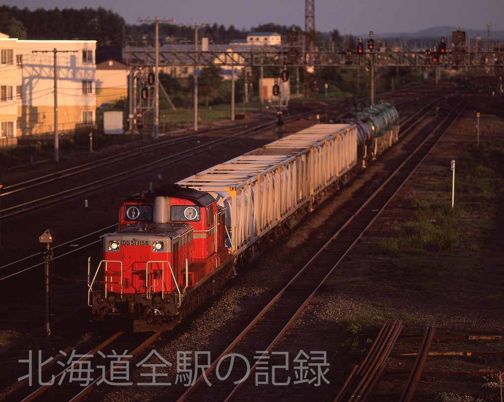 室蘭本線と石勝線が交差する鉄道の要衝。かつては追分機関区が隣接され、国鉄最後のSL牽引の旅客列車が走っていた。近隣の安平道に駅にはD51-320とキハ183が展示されている