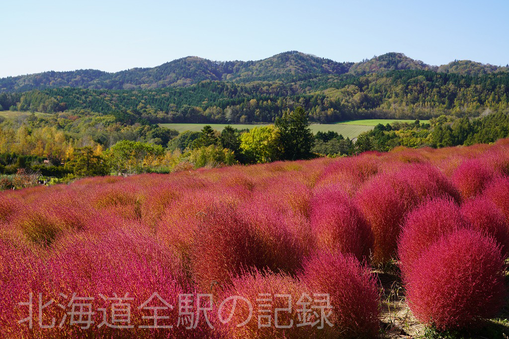 近隣のゆにガーデンはコキアの名所