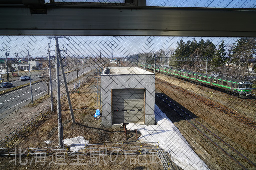 中線を有し優等列車の追い抜きが見られる。当駅で苗穂出場車の試運転が折り返す。ときには函館地区の733系の姿が見られることも