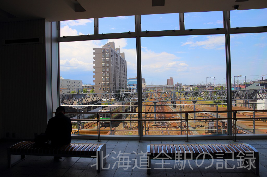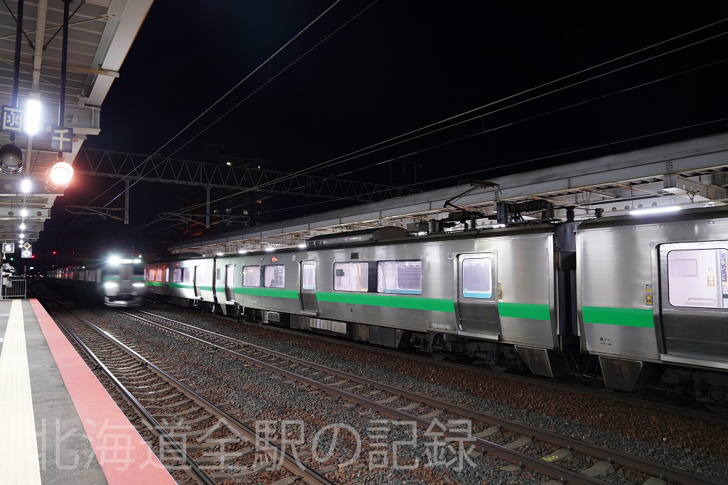 函館本線と千歳線の乗換駅。かつてはカートレイン北海道の発着駅だった。2011年(平成23年)1月30日橋上駅舎の供用を開始